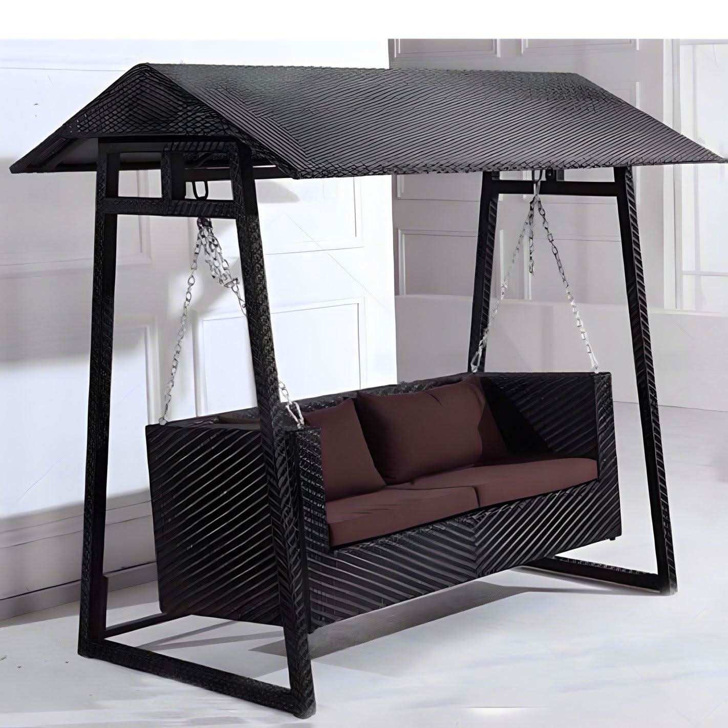مرجيحة مصنعه من الراتان البيور المستورد من كوريا حيث الراتان مجدول على حديد سميك مدهون فرن الكتروستاتيك ضد الصدأ والعوامل الجوية