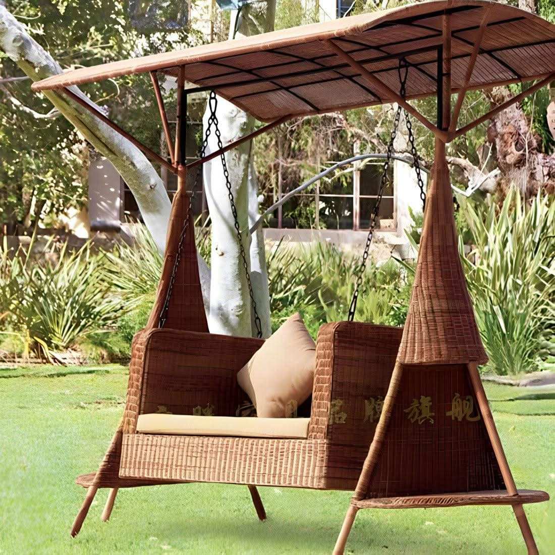 مرجيحة مصنعه من الراتان البيور المستورد من كوريا حيث الراتان مجدول على حديد سميك مدهون فرن الكتروستاتيك ضد الصدأ والعوامل الجوية