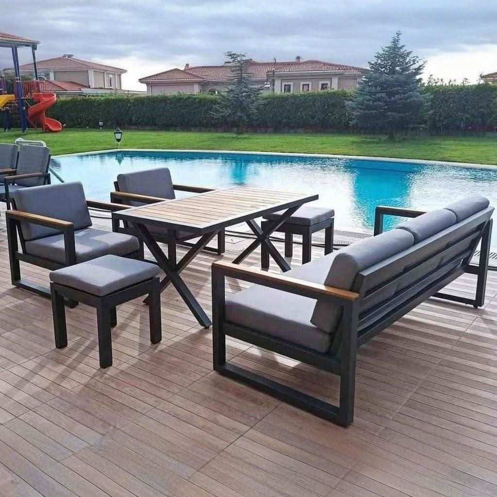 كنبه وكراسي ووترابيزه مصنعه من الحديد السميك مدهون فرن الكتروستاتيك ضد الصدأ والعوامل الجوية