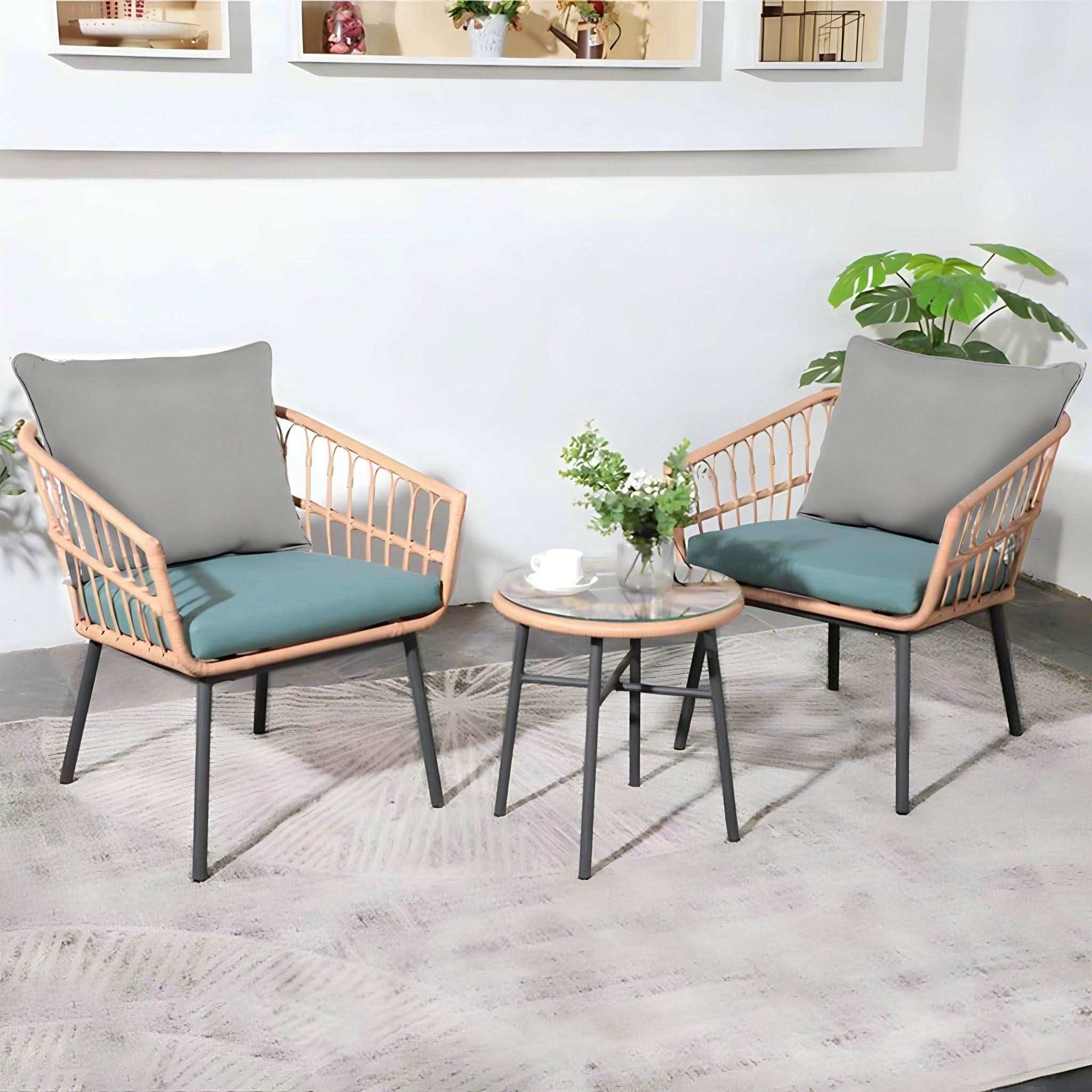 كراسي و ترابيزة مصنعة من الراتان البيور المستورد من كوريا حيث الراتان مجدول على حديد سميك مدهون فرن الكتروستاتيك ضد الصدأ والعوامل الجوية