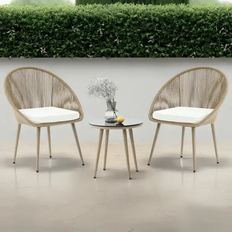 كراسي و ترابيزة مصنعه من الدوبار حيث الدوبار مجدول على حديد سميك مدهون فرن الكتروستاتيك ضد الصدأ و العوامل