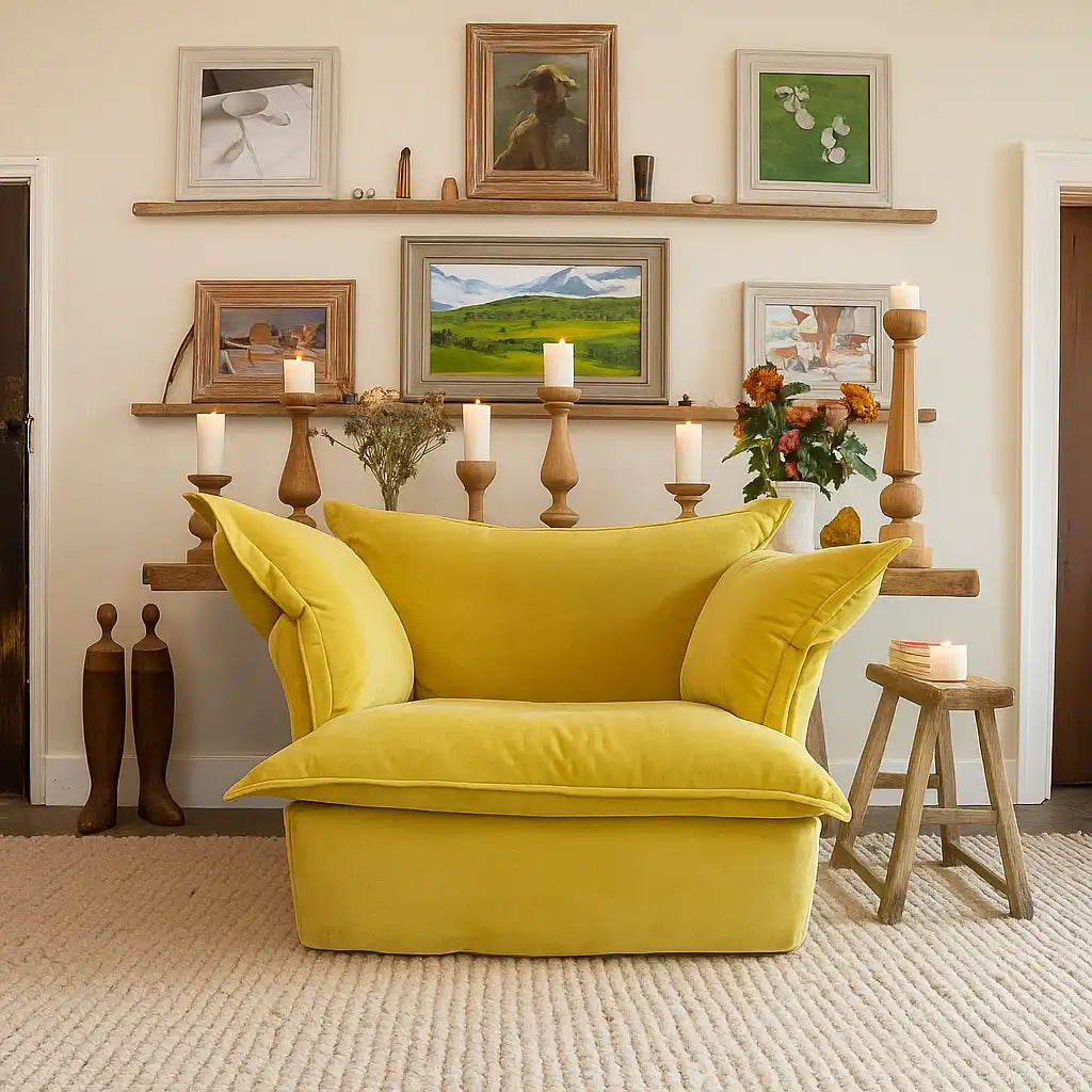 المقاس: العرض 100 × العمق 80 × الارتفاع 80 سمخامة الخشب: زاننوع الإسفنج: سوفتكثافة الإسفنج: 30 سمخامة القماش: كتاناللون: أصفركود المنتج: COF22