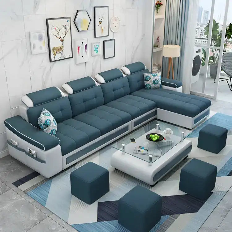 اللون : أزرق*أبيض المقاس : الطول 320سم- العرض 180سم- العمق 85 سم- الإرتفاع 80سم الخامات : خشب زان طبيعي- إسفنج عالي الكثافة- قماش قطيفة كود المنتج : STB92