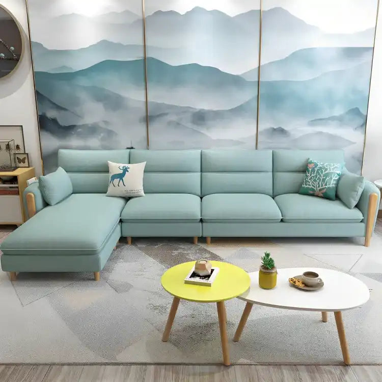 كنبة زاوية خشبية، مصنوعة من خشب الزان عالي الجودة و إسفنج عالي الكثافة وقماش القطيفة الناعم، وتوفر مساحة كبيرة للجلوس والاسترخاء. مناسبة بشكل خاص لغرف المعيشة. تتميز بدقة فائقة في التصميم وبناء عالي الجودة، مما يجعلها خيارًا مثاليًا لأولئك الذين يبحثون عن الراحة والأناقة في نفس الوقت.