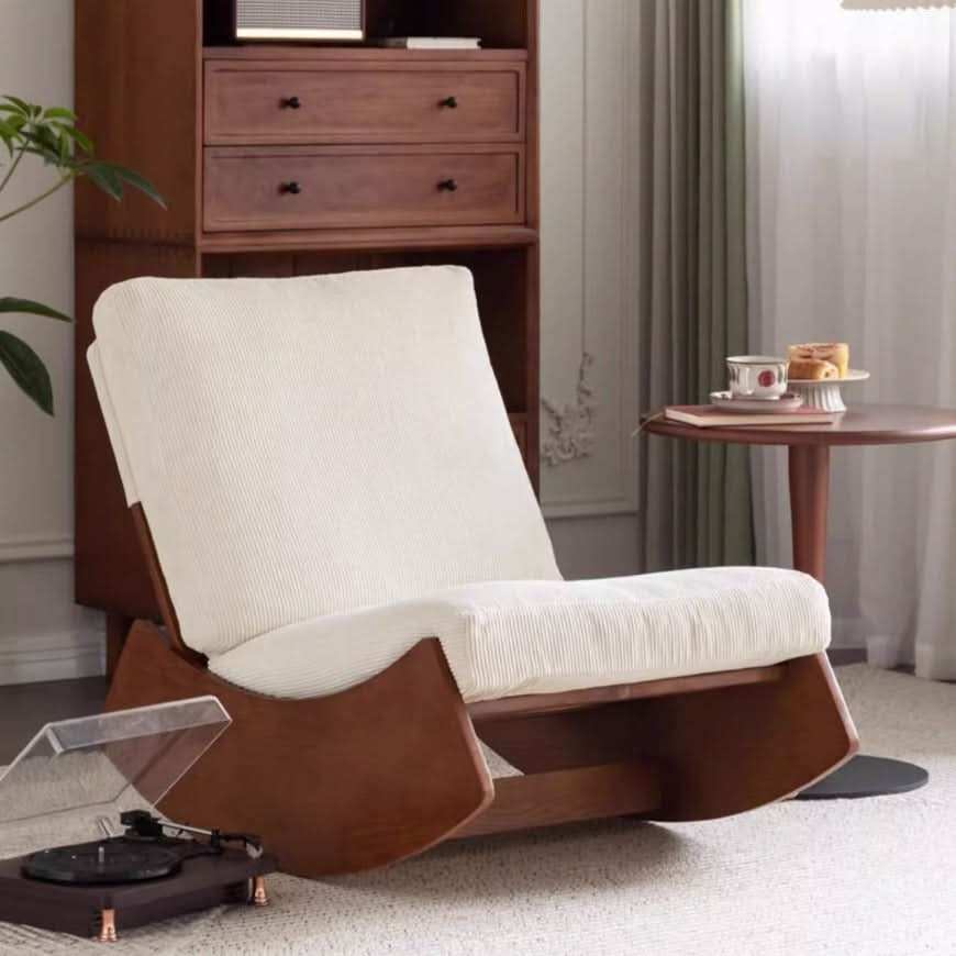 الأريكة تتميز بتصميم عصري وأنيق، حيث تجمع بين قاعدة خشبية ذات لون بني داكن ووسائد مريحة بلون أبيض. القاعدة مصممة بشكل منحنٍ يسمح للكرسي بالتأرجح، ما يضفي على الأريكة طابعًا فريدًا وجذابًا. المادة المستخدمة في الوسائد ناعمة وقابلة للتهوية، مما يُظهِر اهتمامًا بالراحة إلى جانب الأناقة. هذه التفاصيل تجعل من هذه القطعة مثالية لإضافتها إلى أثاث غرف المعيشة أو المكاتب الحديثة.