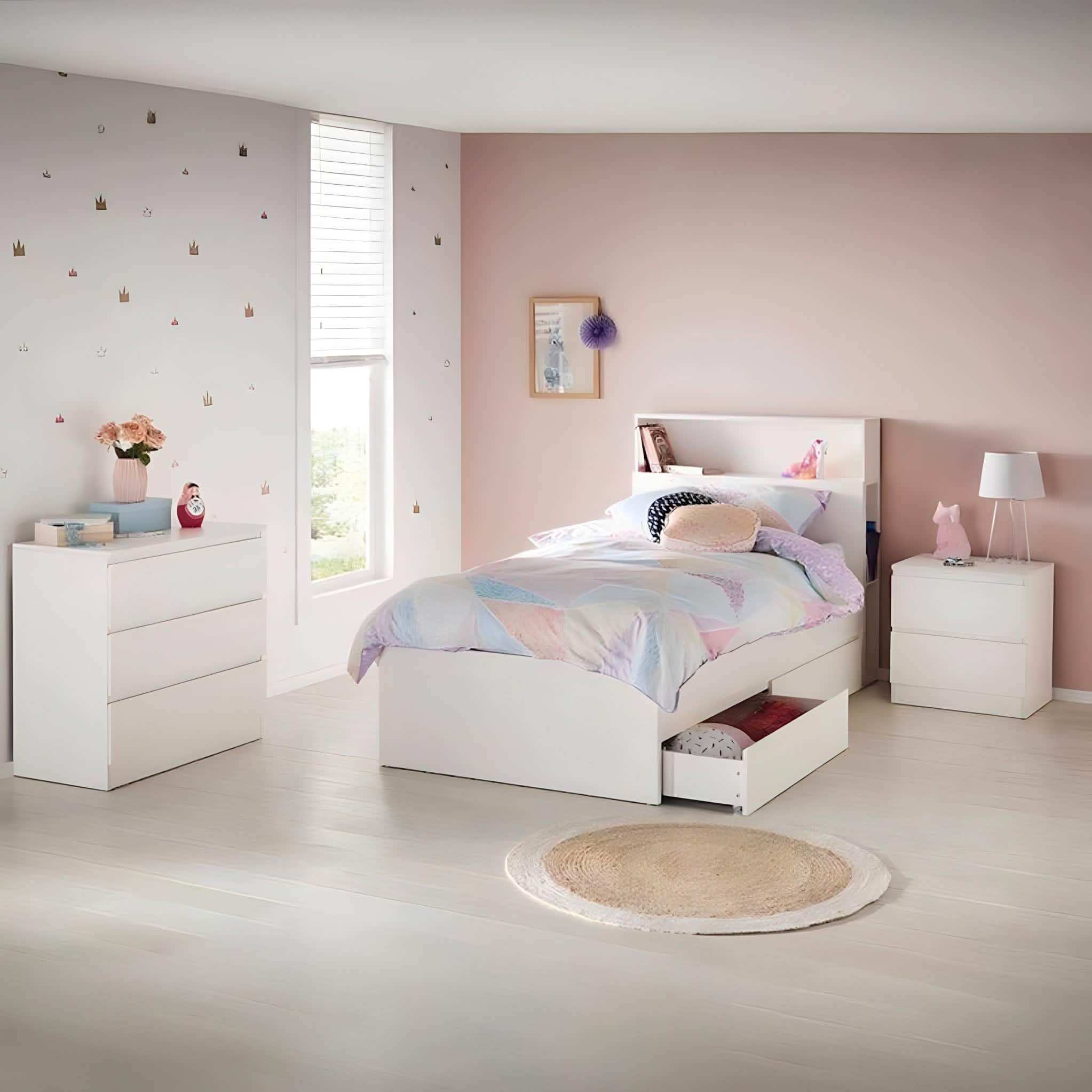 • محتويات الغرفة: 1 سرير فردي + 1 كومود + 1 تسريحة