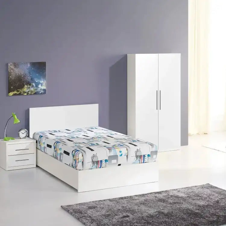 تمتع براحة لا مثيل لها وأناقة مميزة مع غرفة النوم ذات التصميم الحديث. ستشعر وكأنك في واحة من الهدوء والجمال في غرفة نومك، مكونة من دولاب + سرير + كومود، مصنوعه من ام دي اف ميلامين عالي الجودة، ستضيف غرفة النوم هذه لمسة من الرقي والأناقة لمنزلك.