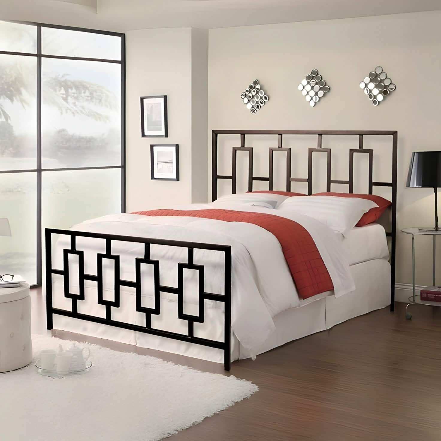 يجمع هذا السرير بين التصميم العصري والقوة، مما يجعله الخيار الأمثل لجميع الأذواق. هيكله المعدني يوفر الدعم المثالي، بينما تضفي لمسات التصميم الفريدة لمسة جمالية لأي غرفة نوم توفر المواد عالية الجودة المستخدمة في تتصنيعه متانة تدوم طويلاً،