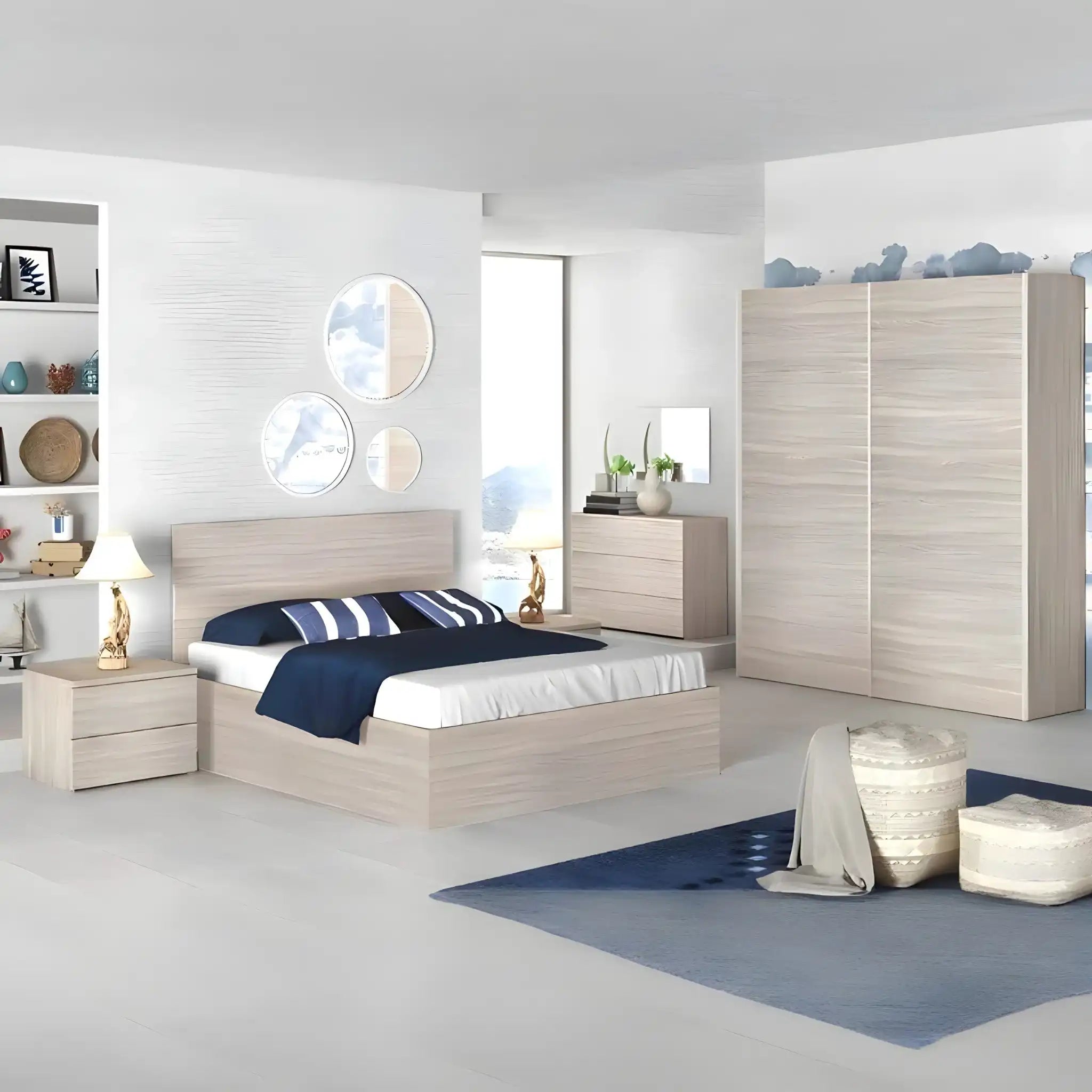 • محتويات الغرفة: 1 سرير كينج + 1 كومود + 1 دولاب + 1 تسريحة + 1 مرايا