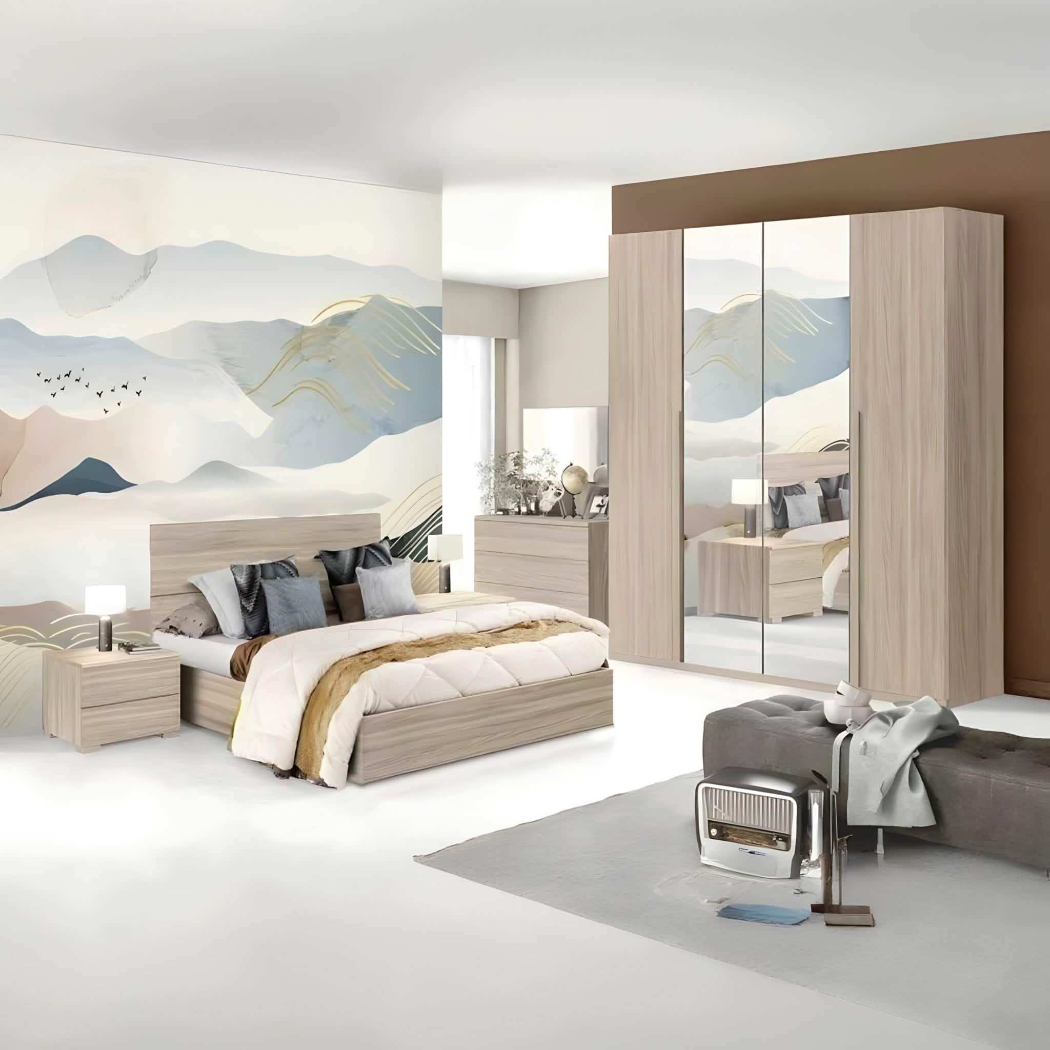 • محتويات الغرفة: – 1 سرير كينج – 1 كومود – 1 تسريحة – 1 مرايا – 1 دولاب• مقاسات السرير: العرض 160 × الطول 200 × الارتفاع 115 سم• مقاسات الدولاب: العرض 160 × العمق 50 × الارتفاع 200 سم• مقاس الكومودينو: العرض 50 × العمق 40 × الارتفاع 50 سم• مقاسات التسريحة: العرض 80 × العمق 40 × الطول 80 سم• مقاسات المرايا: الطول 80 سم × العرض 80 سم• خامة الخشب: خشب ام دي اف• خامة ألواح السرير: خشب موسكى• اللون: بيج• كود المنتج: ROS7