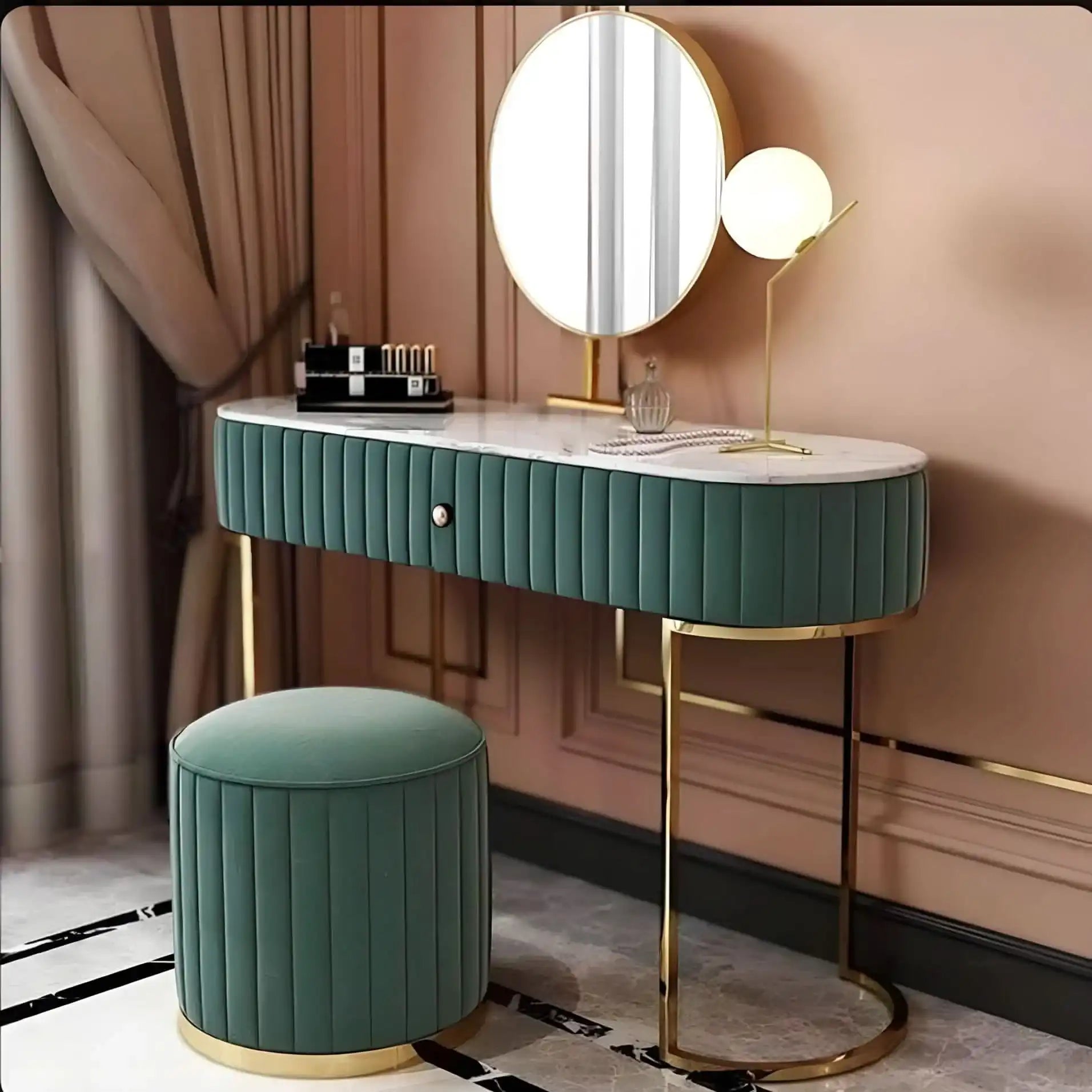 التسريحة المصنوعة من خشب ام دي اف هي قطعة أثاث عملية وأنيقة تناسب مختلف أنماط الديكور. يتميز هذا النوع من الخشب بكونه خفيف الوزن مقارنة بالأخشاب الصلبة، مما يسهل نقلها وتغيير موقعها داخل الغرفة.