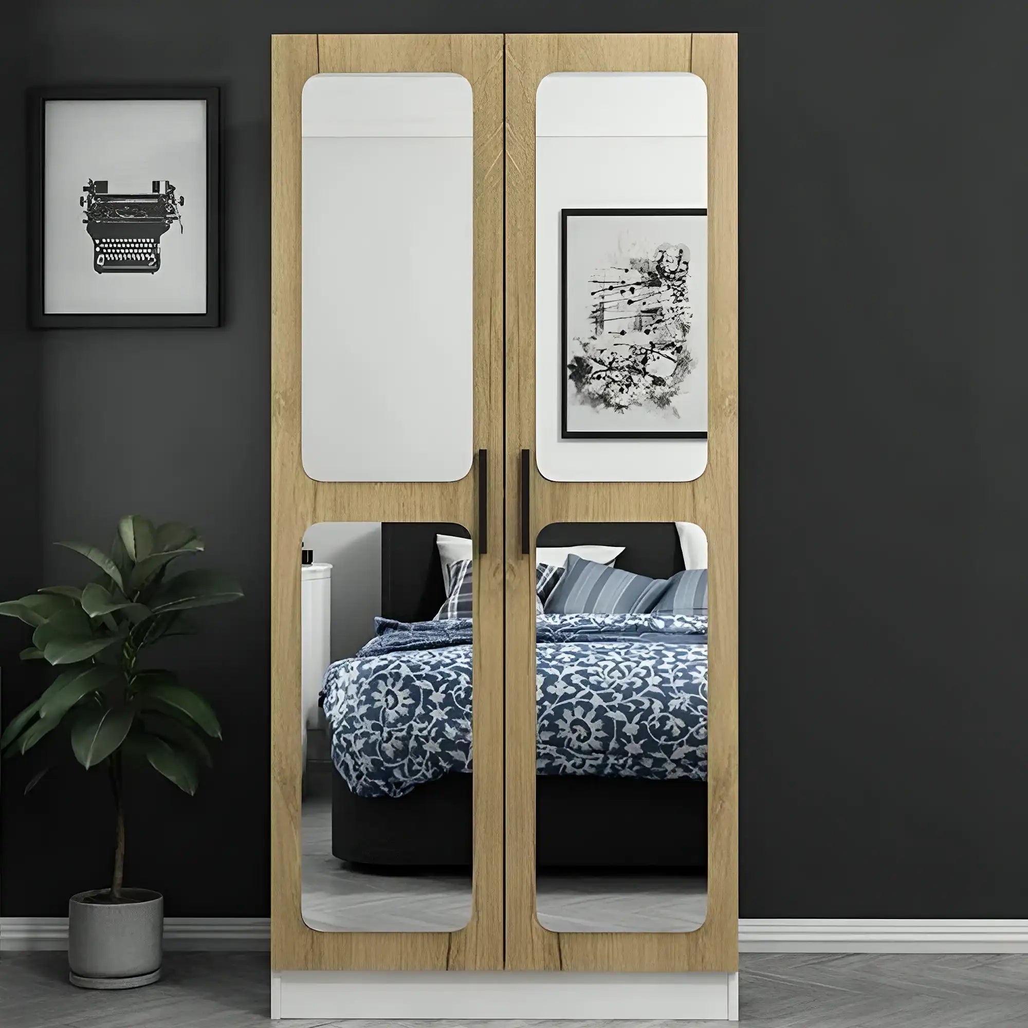 دولاب ملابس خشبي مع المرآة، مصمم بتصميم عصري يوفر لك المساحة الوفيرة لتخزين ملابسك بشكل منظم، مع إضافة لمسة من الجمال إلى ديكور غرفتك. صُمم بعناية فائقة من خشب ام دي اف عالي الجودة الذي يمنحه المتانة والقوة، بينما تضيف المرآة المقسمة عنصرًا من الأناقة والفعالية. إنه الاختيار المثالي لأي شخص يبحث عن دمج الأناقة واللمسة العصرية في مساحة تخزين الملابس الخاصة به.