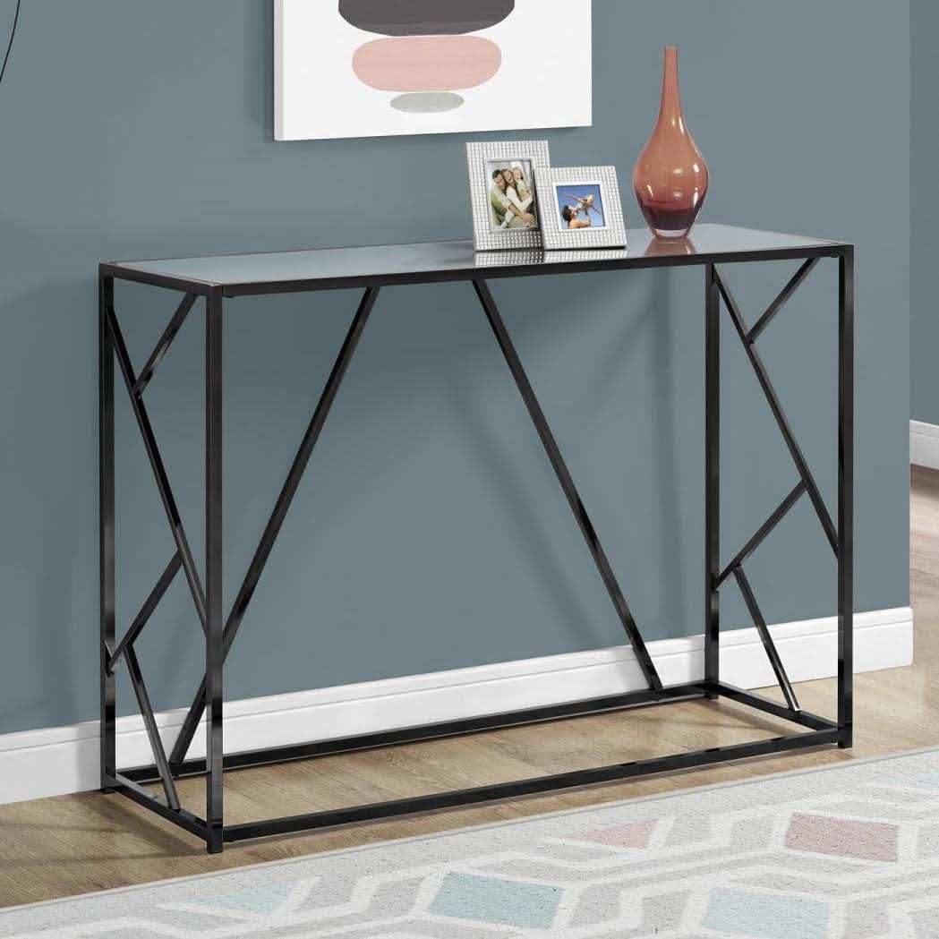 كونسول معدني بأسطح زجاجية، متوفر باللون الأسود، مصنوع من خامات متينة من حديد ستيل والزجاج، فيمكنك وضع الديكورات البسيطة علي السطح، فإنه يتناسب مع أي مساحة داخلية، مثالي لتنظيم الأشياء بأناقة، مضافا لمسة عصرية لديكور منزل