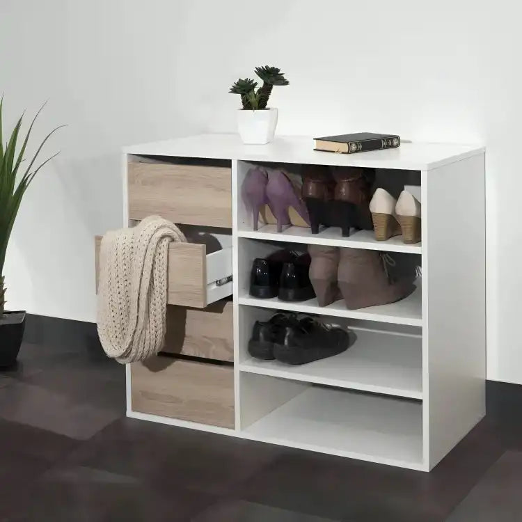 تعتبر جزامة الأحذية الخشبية الحديثة مع الأدراج إضافة مثالية وعملية لأي مساحة منزلية. تصميمها الأنيق والحديث يوفر حلاً مثالياً لتخزين وتنظيم الأحذية بشكل منظم في مدخل المنظم، تتميز ايضاً بمظهرها الأنيق ولونها الذي يجعلها تتناسب مع أي ديكور داخلي. في المنزل.