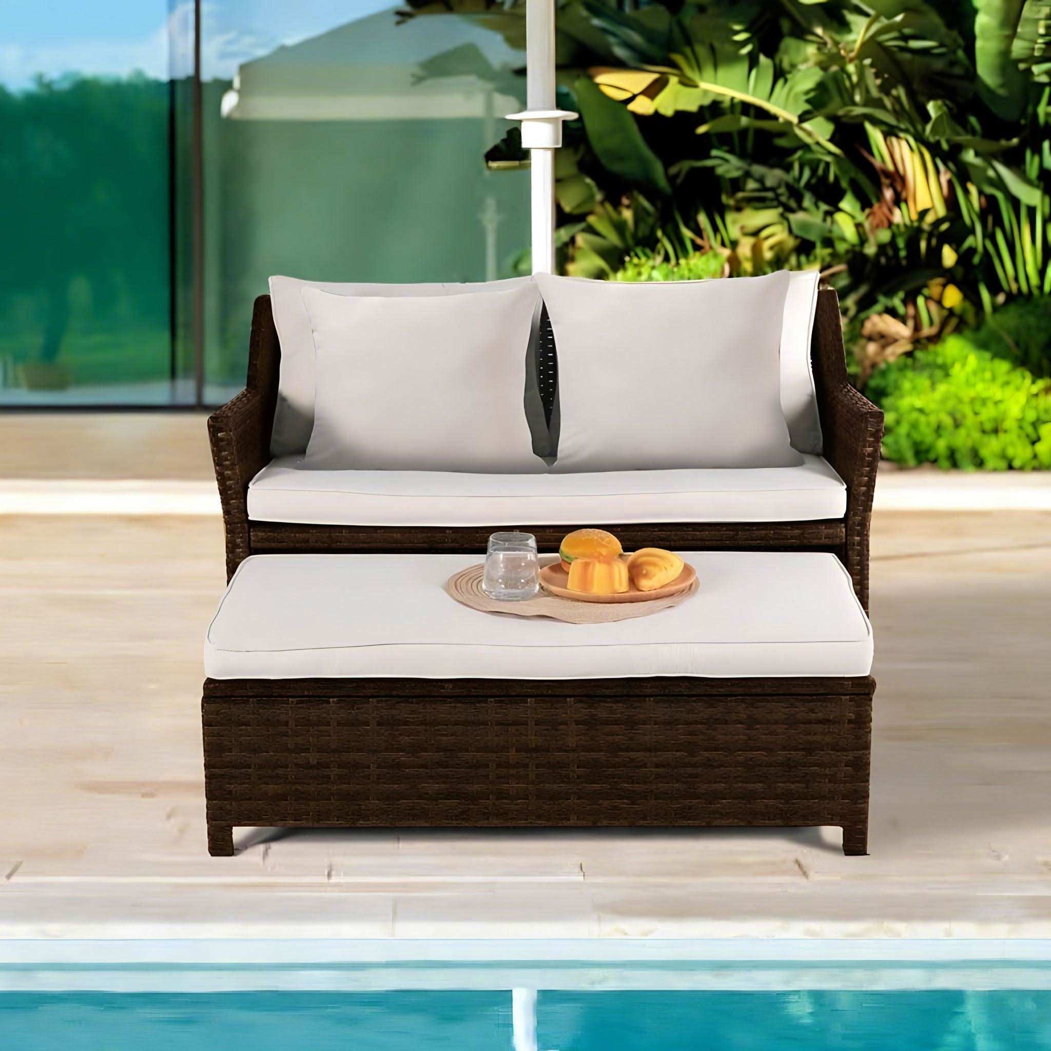كنبة مصنعة من الراتان البيور المستورد من كوريا حيث الراتان مجدول على حديد سميك مدهون فرن الكتروستاتيك ضد الصدأ والعوامل الجوية