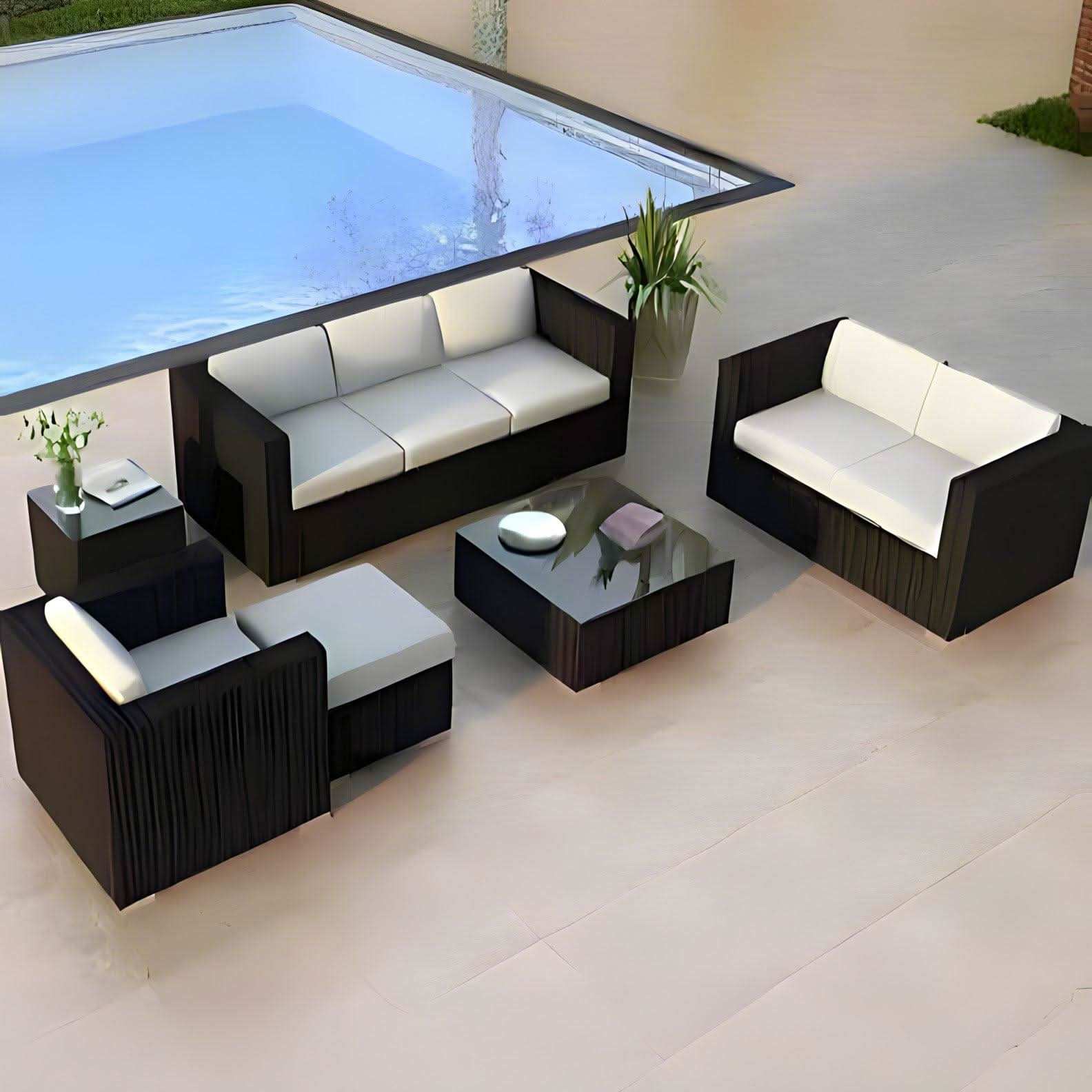 كنبه وكراسي ووترابيزه مصنعه من الراتان البيور المستورد من كوريا حيث الراتان مجدول على حديد سميك مدهون فرن الكتروستاتيك ضد الصدأ والعوامل الجوية