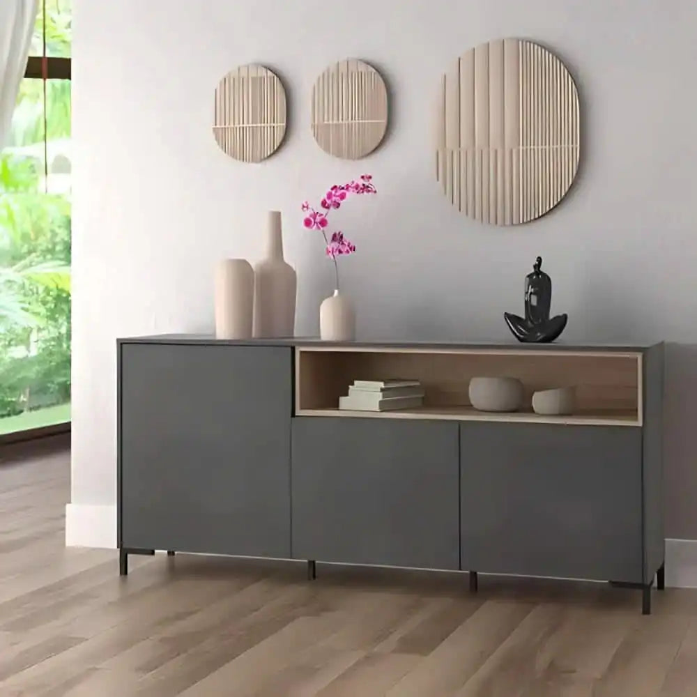 استمتع بمظهرٍ أنيق وتنظيمٍ مثالي مع بوفيه مصنوع من خشب عالي الجودة . يُعد هذا البوفيه خيارًا مثاليًا لكل منزل ، حيث يجمع بين الجمال والوظائف ، ليلبي احتياجات كل الأذواق . يأتي مع عدد من الضلف والأرفف حتي يصبح من السهل تنظيم الأدوات المنزلية بطريقة مرتبة وجذابة .
