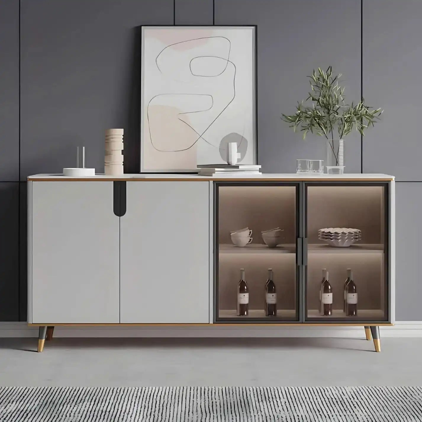 بوفيه خشب ام دي ف بتصميم يجمع بين الأناقة والعملية تم تصميم هذا البوفيه ليكون مركزًا لجماليات منزلك ، إذا كنت تبحث عن قطعة أثاث تجمع بين الجمال و المتانة ، فإن هذا البوفيه هو الخيار الأمثل لك . يتناسب هذا البوفيه مع مختلف أنماط الديكور، سواء كان منزلك عصريًا أو تقليديًا سوف يضفي لمسة من الأناقة والفخامة على أي مكان .