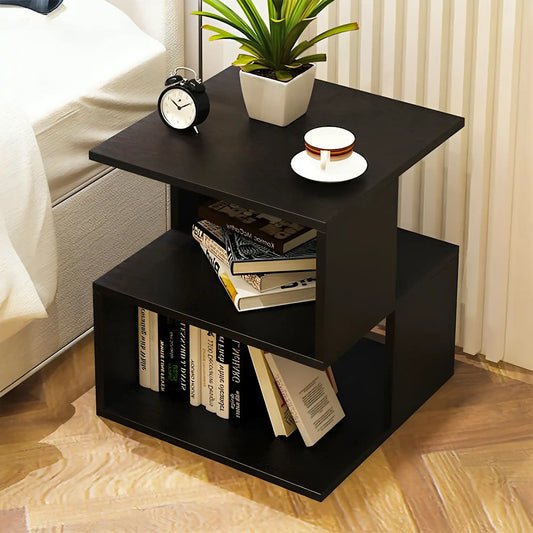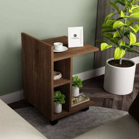 طاولة جانبية بأرفف خشبية
