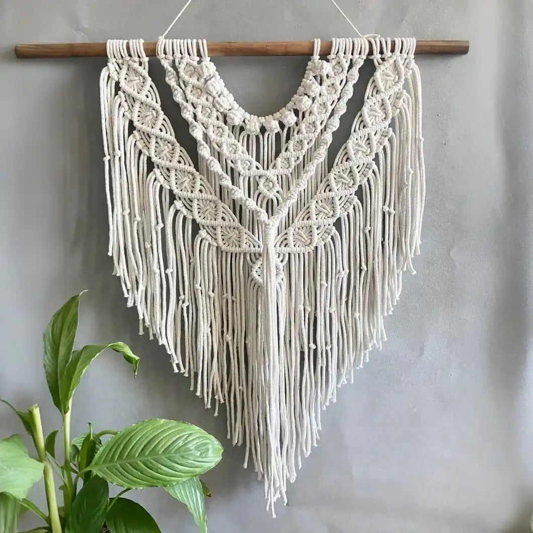 المكرمية الحائطية هي قطعة فنية تُستخدم عادة لتزيين الجدران، وتُصنع من خيوط مكرمية يتم ربطها بطريقة معقدة لتشكيل أنماط وأشكال زخرفية جميلة. تتكون المكرمية الحائطية من عقد متعددة تُستخدم لتشكيل تصاميم متنوعة مثل الأشكال الهندسية، والأزهار، والدوائر، والأنماط المتشابكة