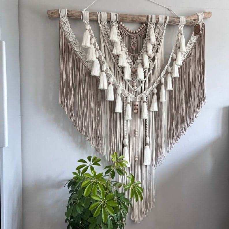 المكرمية الحائطية هي قطعة فنية تُستخدم عادة لتزيين الجدران، وتُصنع من خيوط مكرمية يتم ربطها بطريقة معقدة لتشكيل أنماط وأشكال زخرفية جميلة. تتكون المكرمية الحائطية من عقد متعددة تُستخدم لتشكيل تصاميم متنوعة مثل الأشكال الهندسية، والأزهار، والدوائر، والأنماط المتشابكة