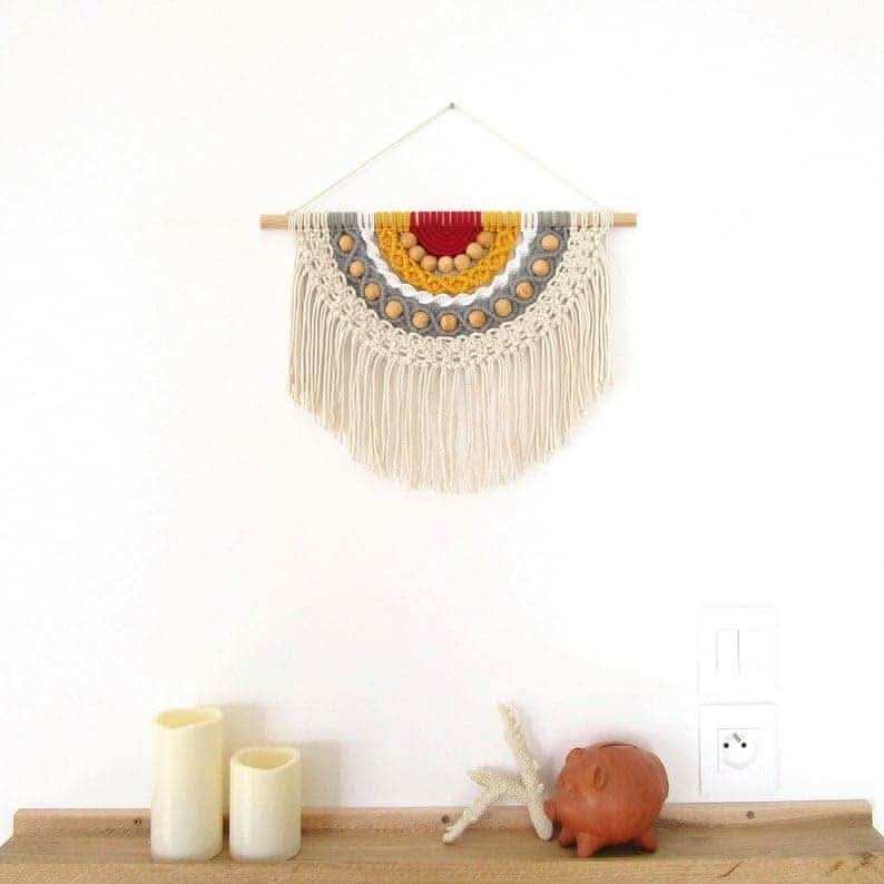 المكرمية الحائطية هي قطعة فنية تُستخدم عادة لتزيين الجدران، وتُصنع من خيوط مكرمية يتم ربطها بطريقة معقدة لتشكيل أنماط وأشكال زخرفية جميلة. تتكون المكرمية الحائطية من عقد متعددة تُستخدم لتشكيل تصاميم متنوعة مثل الأشكال الهندسية، والأزهار، والدوائر، والأنماط المتشابكة