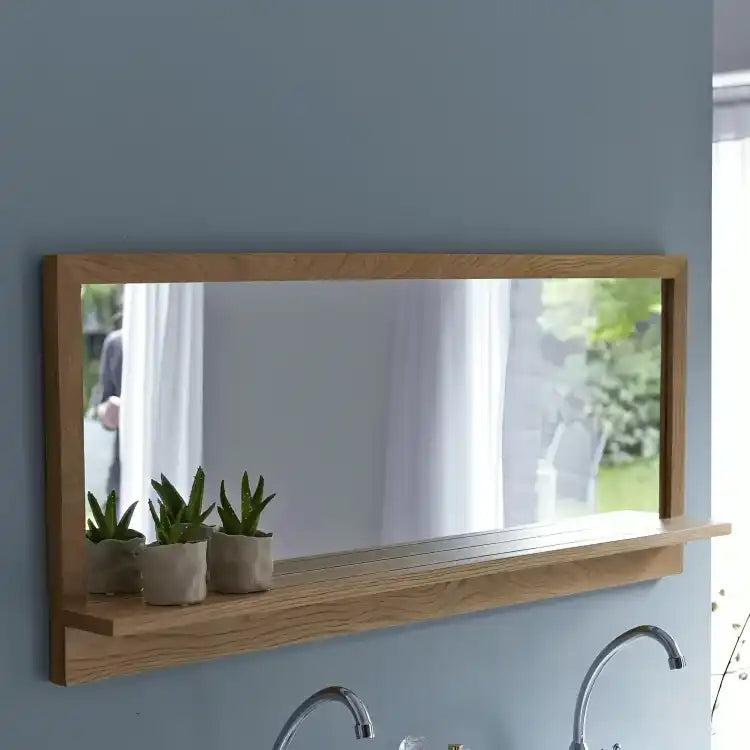 تعرّف على جمال المرايا الأنيقة والعملية المزودة برف بتصميم بسيط. تتميز منتجاتنا بجودتها العالية وتصميمها المميز الذي يجمع بين الأناقة والوظائف المتعددة. صُنعت المرايا من خشب موسكي الذي يتمتع بالمتانة والجمال الطبيعي.