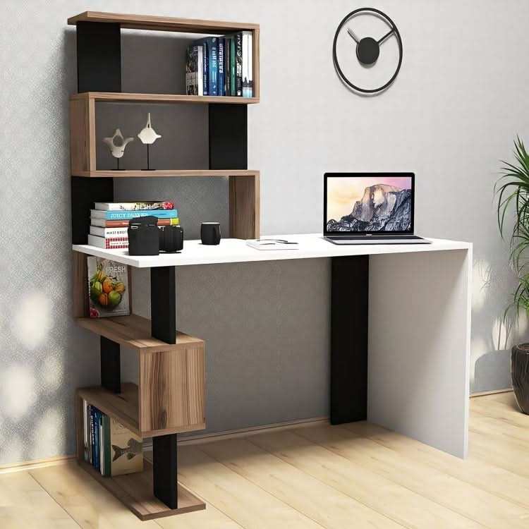 مكتب رائع مع رفوف علوية، اجعل مكتبك مكانًا مثاليًا للعمل أو الدراسة المكتب الرائع هذا الذي يأتي مع رفوف علوية. سوف يساعدك هذا المكتب على البقاء منظمًا ويوفر لك مساحة كافية لوضع جميع أغراضك الضرورية بشكل مرتب ومريح، مصنوع من خشب ام دي اف عالي الجودة ومتين، استمتع بتصميم أنيق ووظيفي مع سطح المكتب الواسع الذي يتيح لك وضع حاسوبك المحمول، الكتب، واللوازم المكتبية بكل سهولة. كما تأتي الرفوف العلوية المدمجة مع المكتب لتوفر لك مساحة إضافية لعرض الديكورات الجميلة أو لوضع الأغراض الصغيرة أو الكتب.