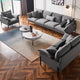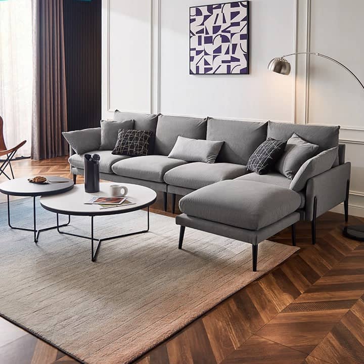 يتميز طقم الكنب بتصميم مميز ومريح للأسترخاء . ويتميز بلمسة نهائية محايدة تنسق مع أي ديكور تقريبًا ، كما أنه مصنوع من قماش الكتان والقاعدة الصلبة المصنوعة من الخشب الزان لتكمل البنية القوية إلى جانب تصميم ممتع.