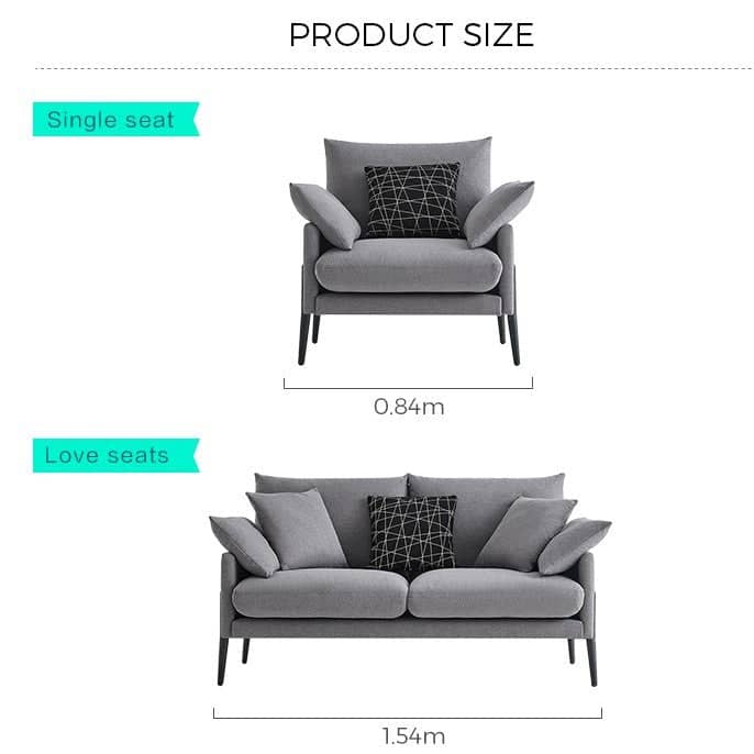 المقاس : المفرد : العرض 84 * عمق 94 * ارتفاع 86 سم / الثنائي : العرض 154 * عمق 94 * ارتفاع 86 سم / الثلاثي : العرض 294 * عمق 94 * ارتفاع 86 سم / البف : العرض 75 * عمق 55 * ارتفاع 45 سم