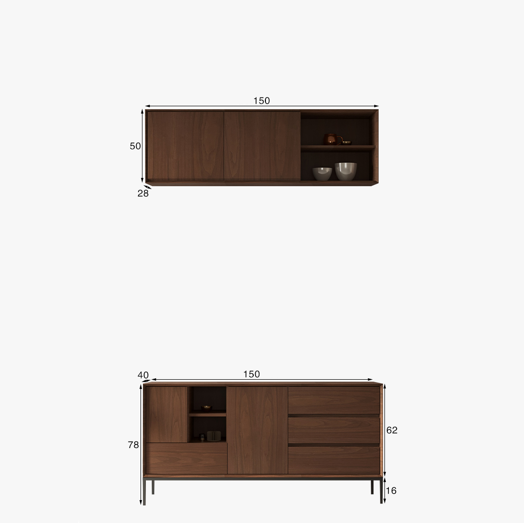 المقاس : خزينة بالاعلي العرض 150* العمق 28* الإرتفاع 50سم - الاسفل العرض 150* العمق 40* الإرتفاع 78سم
