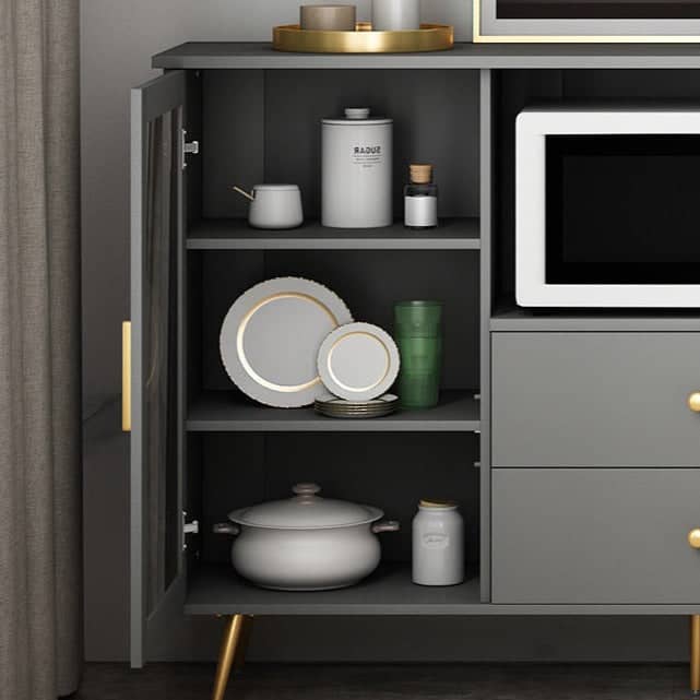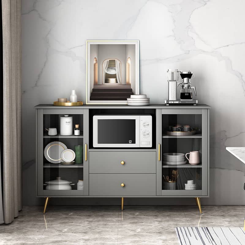 يتميز بوفيه الطعام برف ووحدات تخزبن مميزة وبتصميم حديث يعمل بشكل جيد في تخزين الأدوات المنزلية. يتميز بلمسة نهائية محايدة تنسق مع أي ديكور تقريبًا ، كما أن سطح البوفيه المصنوع من الخشب الام دي اف والزجاج والأرجل الخشبية يمنحهه بنية صلبة ومتينة إلى جانب تصميم ممتع.