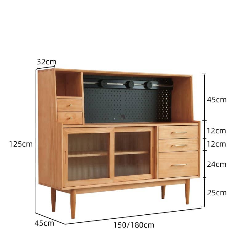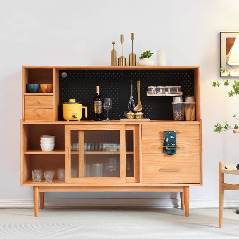 يتميز بوفيه الطعام برف ووحدات تخزبن مميزة وبتصميم حديث يعمل بشكل جيد في تخزين الأدوات المنزلية. يتميز بلمسة نهائية محايدة تنسق مع أي ديكور تقريبًا ، كما أن سطح البوفيه المصنوع من الخشب الزان والزجاج والأرجل الخشبية يمنحهه بنية صلبة ومتينة إلى جانب تصميم ممتع.