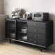 يتميز بوفيه الطعام بوحدات تخزبن مميزة وبتصميم حديث يعمل بشكل جيد في تخزين الأدوات المنزلية. يتميز بلمسة نهائية محايدة تنسق مع أي ديكور تقريبًا ، كما أن سطح البوفيه المصنوع من الخشب الام دي اف والأرجل الخشبية يمنحهه بنية صلبة ومتينة إلى جانب تصميم ممتع.