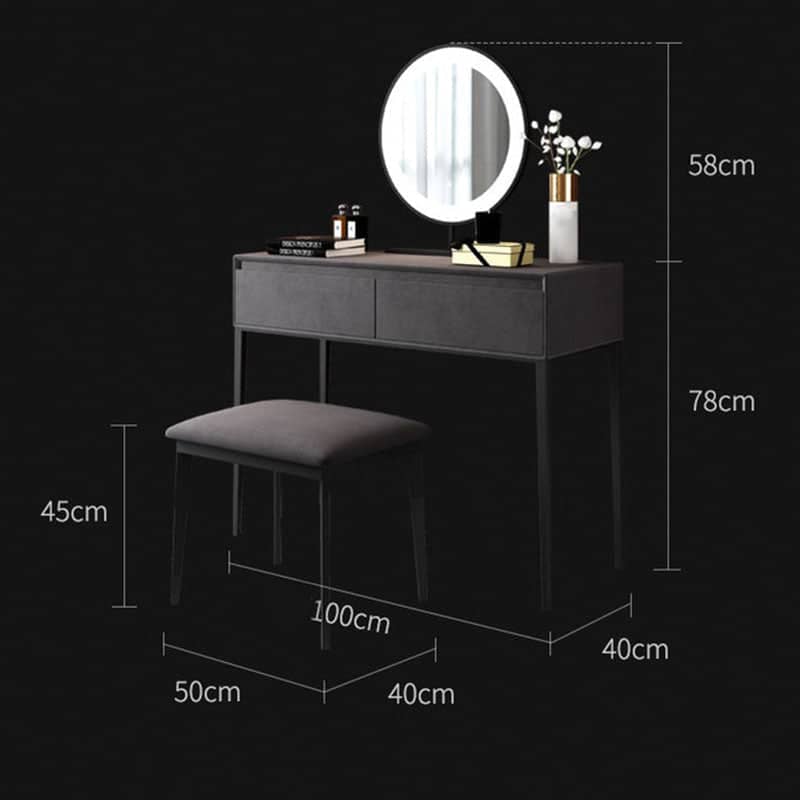 مقاس التسريحة : العمق 40 * العرض 100 * الارتفاع 78 سم / مقاس الكرسي : العرض 50 * العمق 40 * الارتفاع 45 سم