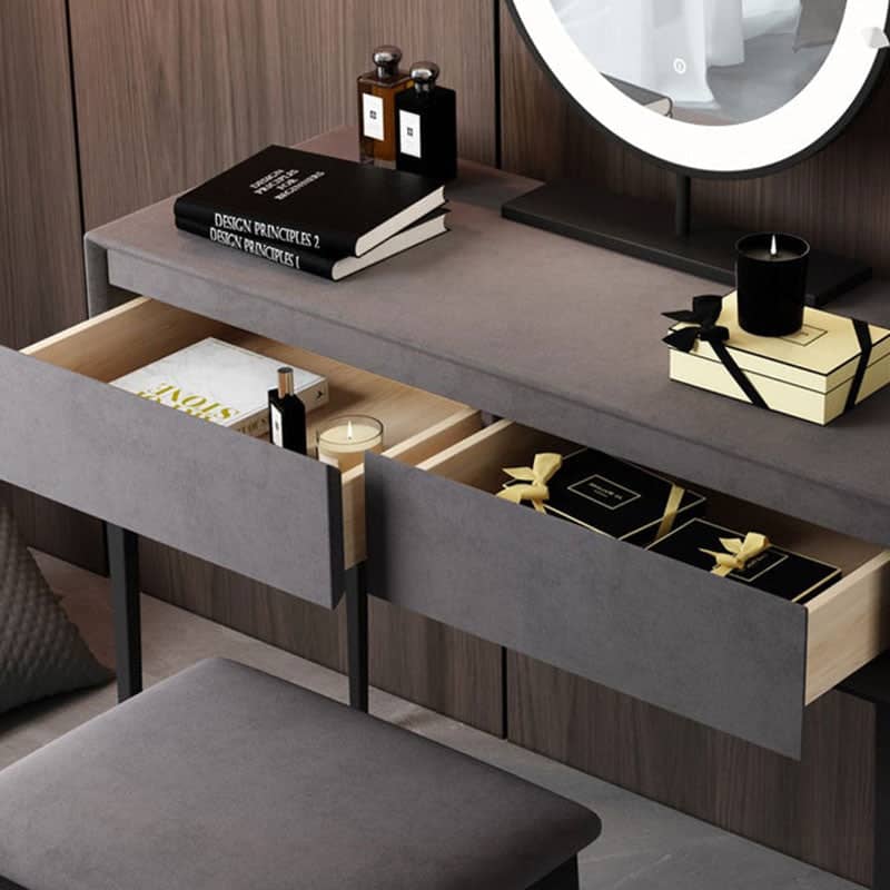 تعتبر هذه التسريحة الخشبية بتصميم عصري إضافة مميزة لأي غرفة نوم أو غرفة ملابس. تتميز بلون رمادي