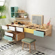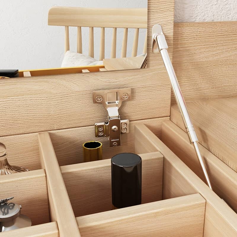 تتميز التسريحة بمرآة عملية ووحدات للتخزين المدمج والمفتوح بتصميم حديث تعمل بشكل جيد في كل من تخزين أدوات التجميل والأدوات المنزلية. تتميز بلمسة نهائية محايدة تنسق مع أي ديكور تقريبًا ، كما أن سطح التسريحة المصنوعة من الخشب الام دي اف يمنحها بنية متينة إلى جانب تصميم ممتع.