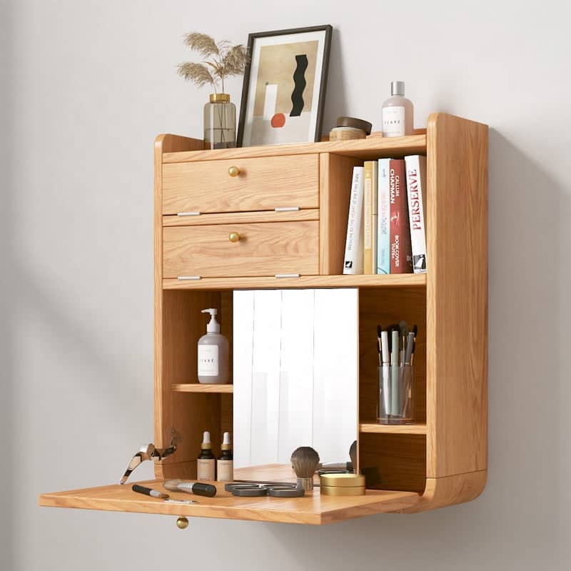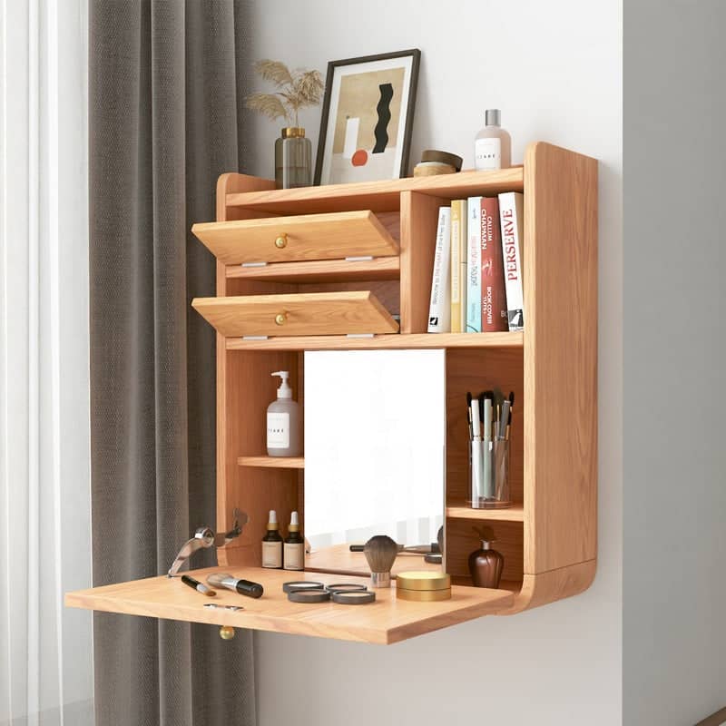 تتميز التسريحة بمرآة عملية ووحدات للتخزين المدمج والمفتوح بتصميم حديث تعمل بشكل جيد في كل من تخزين أدوات التجميل والأدوات المنزلية. تتميز بلمسة نهائية محايدة تنسق مع أي ديكور تقريبًا ، كما أن سطح التسريحة المصنوعة من الخشب الام دي اف يمنحها بنية متينة إلى جانب تصميم ممتع.