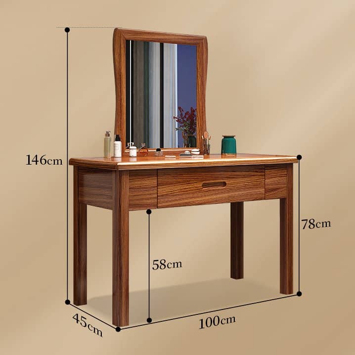 مقاس التسريحة : العمق 45 * العرض 100 * الارتفاع 146 سم / مقاس الكرسي : العمق 28 * العرض 40 * الارتفاع 39 سم