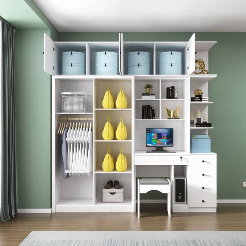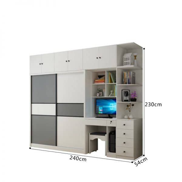 يتميز الدولاب بعلاقة وأرفف عملية وتصميم حديث. مزود بمكتب يستخدم في الدراسة والمهام اليومية. يتميز بلمسة نهائية محايدة تنسق مع أي ديكور تقريبًا، كما أن سطح الدولاب المصنوع من الخشب الزان يمنحهه بنية صلبة ومتينة إلى جانب تصميم ممتع وانيق .