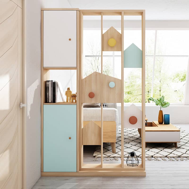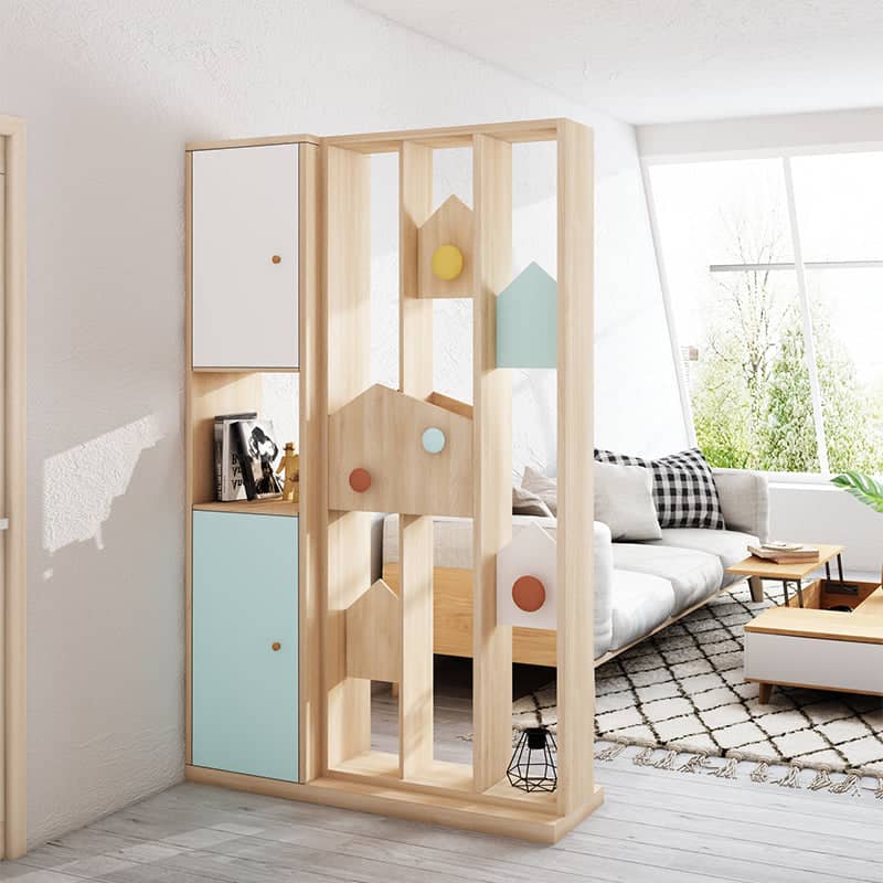 تتميز وحدة الأرفف بوحدات وأرفف للتخزين المدمج والمفتوح وتصميم حديث تعمل بشكل جيد في تخزين الأدوات المنزلية. تتميز بلمسة نهائية محايدة تنسق مع أي ديكور تقريبًا ، كما أن سطح وحدة الأرفف المصنوعة من الخشب الام دي اف يمنحها بنية متينة إلى جانب تصميم ممتع.