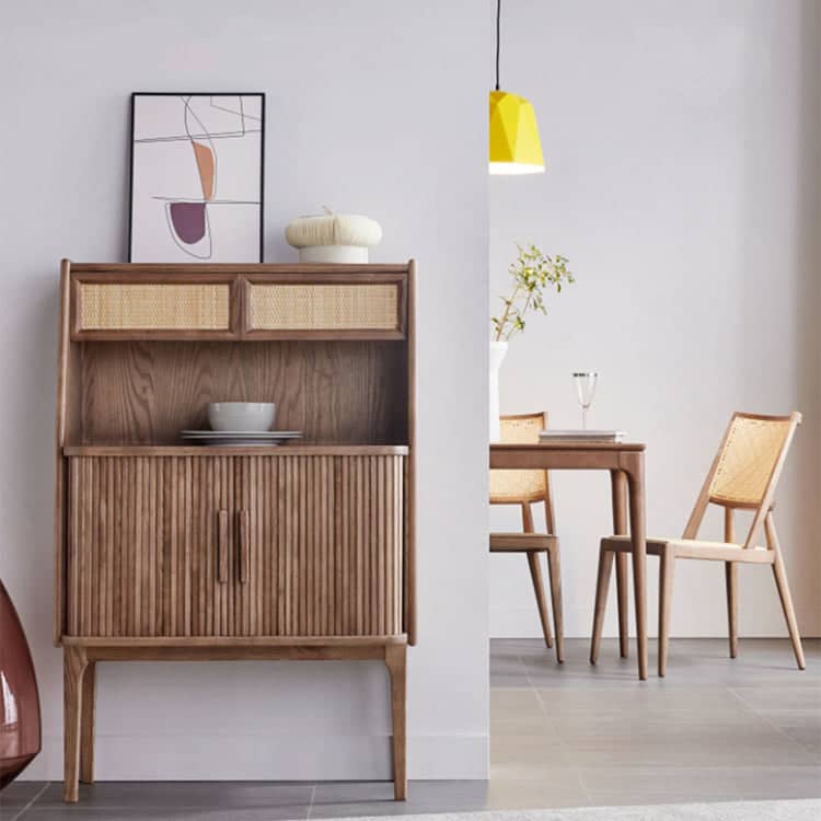 يتميز بوفيه الطعام بأرفف ووحدات تخزبن مميزة وبتصميم حديث يعمل بشكل جيد في تخزين الأدوات المنزلية. يتميز بلمسة نهائية محايدة تنسق مع أي ديكور تقريبًا ، كما أن سطح البوفيه المصنوع من الخشب الكونتر والأرجل الخشبية يمنحهه بنية صلبة ومتينة إلى جانب تصميم ممتع.