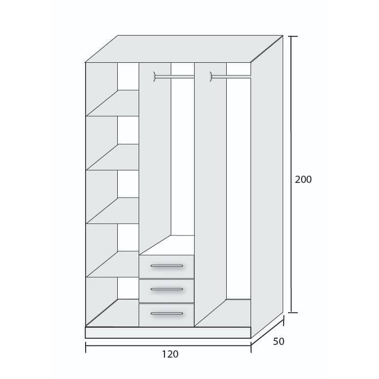 دولاب به ضلفة ارفف بهم 2 ضلفة للتعليق و 3 ادراج و 5 ارفف لتخزين، أنيق وعملي مقسم بشكل رائع لتخزين وترتيب كل ملابسك واغراضك بشكل منظم، قطعة لا يمكنك الاستغناء عنها، مصنوع من اجود انواع الاخشاب مما يعني بقائه معك لسنوات عديدة وسيضيف اناقة وجمال الي غرفتك