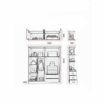 المقاس : العمق 60 * عرض 180 * ارتفاع 260 سم