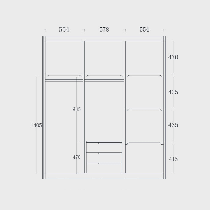 المقاس : العمق 55 * العرض 167 * الارتفاع 175 سم