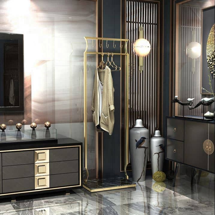 تتميز علاقة الملابس بتصميم حديث تعمل بشكل جيد في تعليق الملابس. تتميز بلمسة نهائية محايدة تنسق مع أي ديكور تقريبًا ، كما أن سطح علاقة الملابس المصنوعة من المعدن والرخام يمنحها بنية متينة إلى جانب تصميم ممتع.