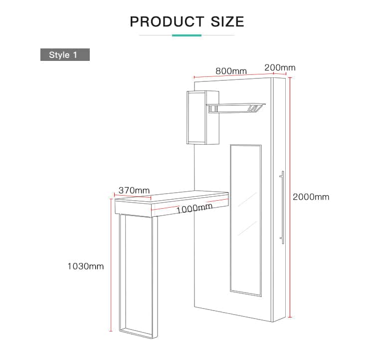 المقاس : العمق 120 * العرض 80 * الارتفاع 200 سم