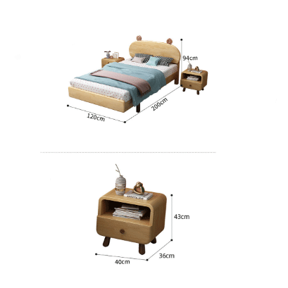 المقاس : السرير : العمق 200 * عرض 120 * ارتفاع 94 سم / الكومودينو : العمق 35 * عرض 40 * ارتفاع 43 سم