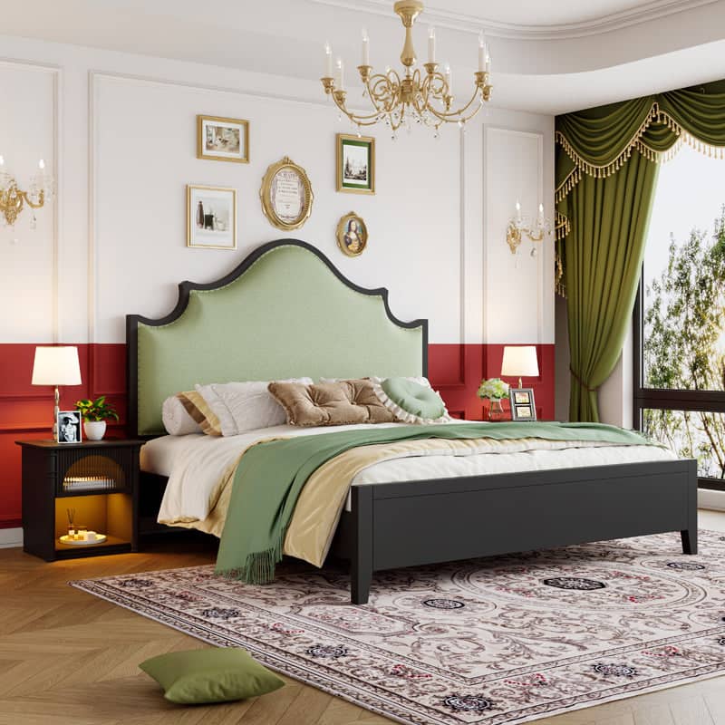يتميز السرير بتصميم انيق ومريح . يتميز بلمسة نهائية محايدة تنسق مع أي ديكور تقريبًا، كما أن سطح السرير المصنوع من القماش و الخشب الزان يمنحهه بنية صلبة ومتينة إلى جانب تصميم ممتع وانيق .