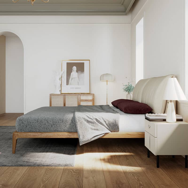 يتميز السرير بتصميم حديث ومريح. يتميز السرير بلمسة نهائية محايدة تنسق مع أي ديكور تقريبًا، كما أن سطح السرير المصنوع من الخشب الزان والأرجل المصنوعة من الخشب يمنحهه بنية صلبة ومتينة إلى جانب تصميم ممتع وانيق .